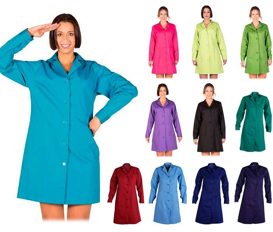 Bata Trabajo Mujer Colores Clásica Sanitaria Entallada Manga Larga