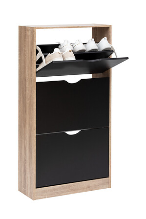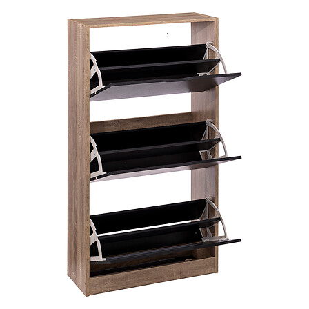 Mueble zapatero negro y natural con 3 cajones