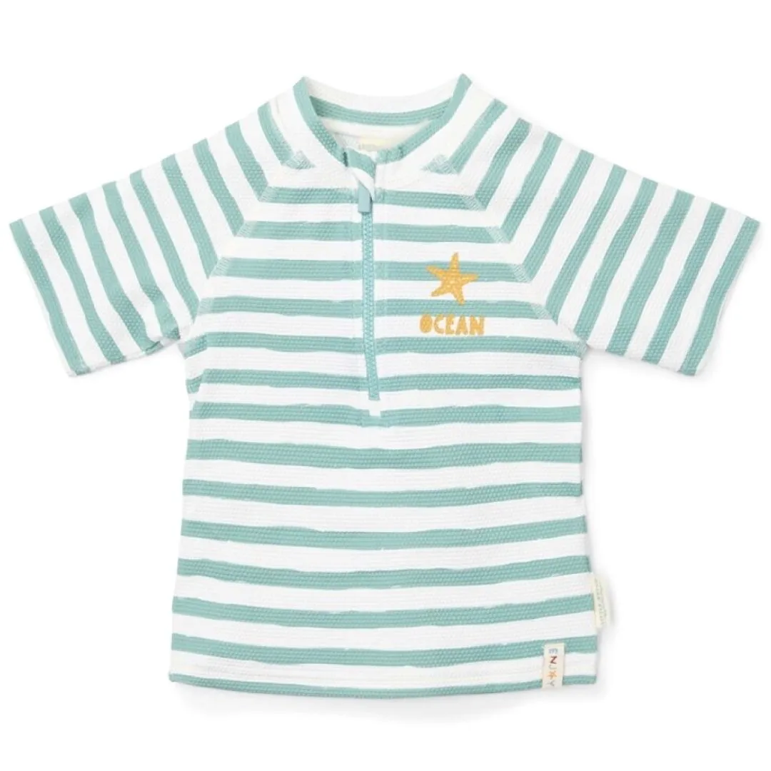 Para completar el look, combina el bañador pañal Surf Van con el gorro y la camiseta a juego, ambos con protección UV 50+, creando un conjunto ideal para el verano.