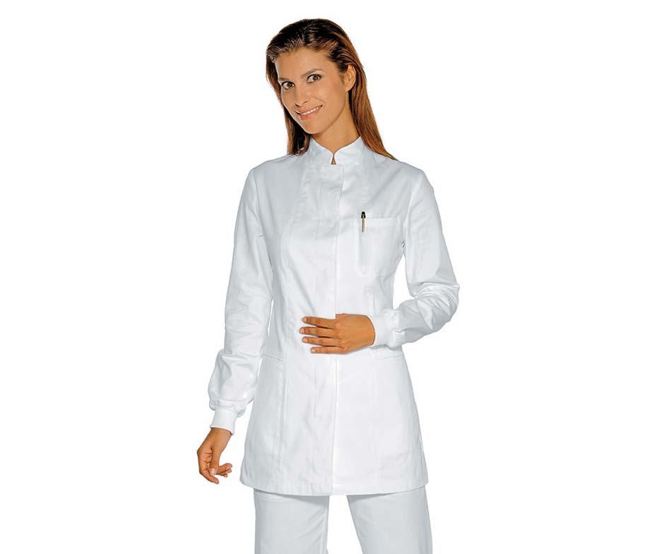 - Bata sanitaria de laboratorio adecuada para médicos, laboratorios, hospitales y farmacias por su textura y comodidad así como por la calidad de su tejido perteneciente a la prestigiosa marca italiana Isacco.
