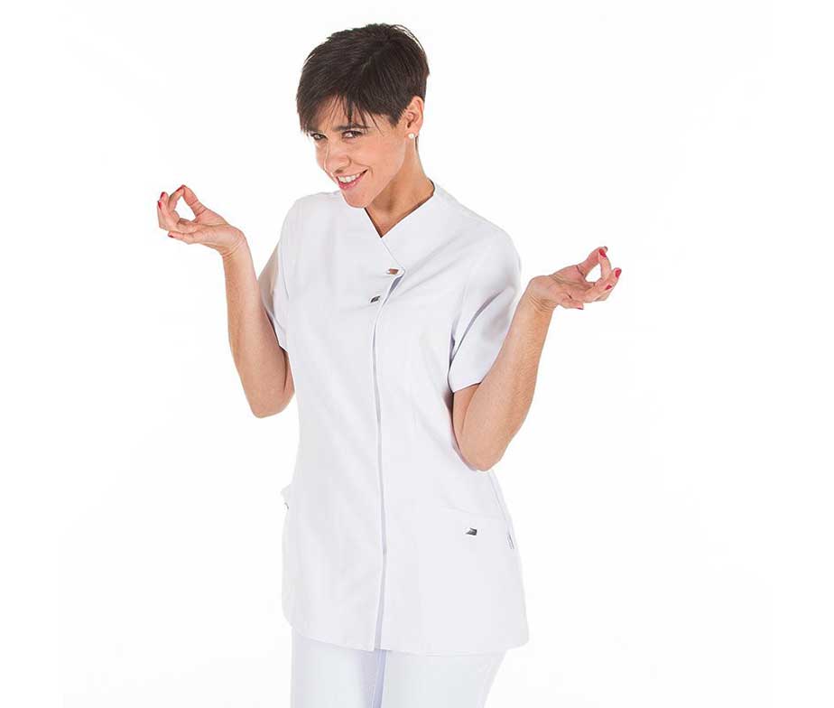Casaca microfibra Garys. Uniforme original de microfibra de la casa Garys. Casaca sanitaria microfibra en manga corta y larga para mujer. Dos bolsillos. Cierre de botones de presión ocultos. Pinzas en la espalda. Tejido microfibra: antibacterias, repelente a los líquidos, muy transpirable, no necesita plancha, tolerante a salpicaduras de lejía. Lavable 90 grados. Repele cabellos y pelos de mascota. Casaca de trabajo perfecta para uniformes barbería, peluquería y estética. Ideal también para uniforme enfermería original, uniforme ayuda a domicilio, casaca pediátrica, pijama sanitario microfibra, uniforme auxiliar de enfermería, uniforme dentista colores, masajistas, uniformes veterinaria microfibra, perruquerías, peluquerías caninas, tiendas de mascotas, centros de protección animal y adopción de mascotas, ya que repele el pelo. También es ideal para viveros y floristerías, barberías, centros de belleza, cuidado y salud, spas, balnearios, centros de estética o ropa de trabajo sanitarios en general con colores originales, modernos y divertidos.