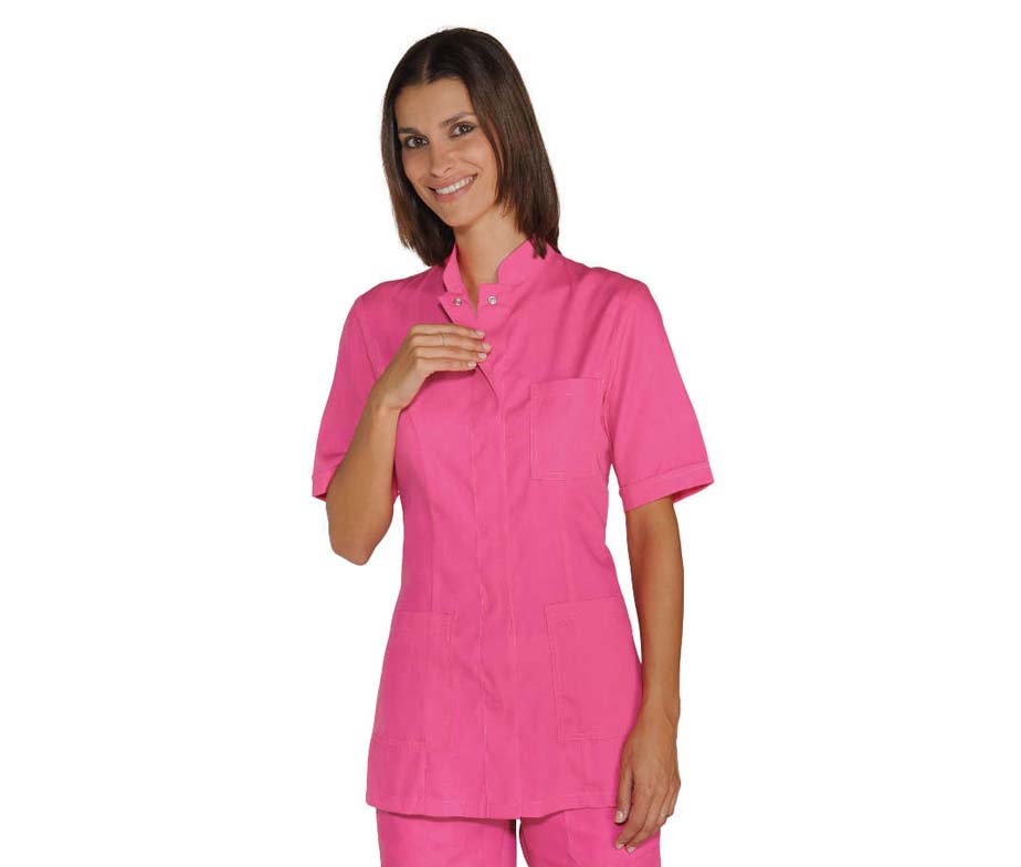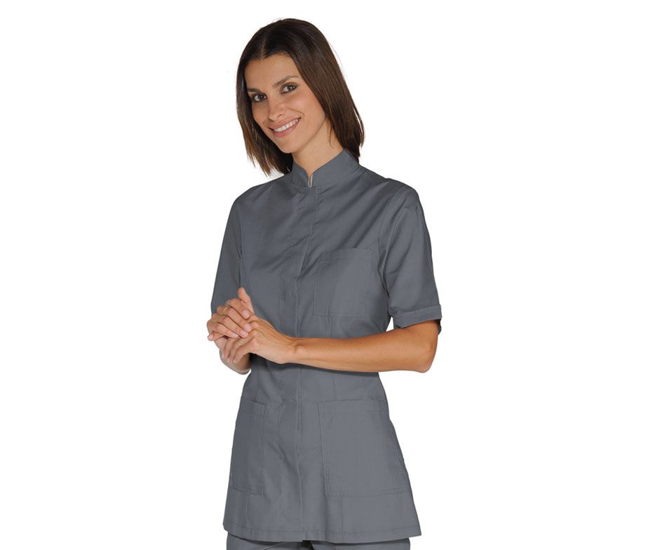 Casaca sanitaria original y moderna para mujer disponible en manga corta o manga larga en diversos colores a elegir, cierre con corchetes a presión oculto, Casacas sanitarias originales con elegante cuello Mao. Confeccionada en tejido mezcla 35% algodón 65% poliéster y 100% algodón en tejido tejano, 3 bolsillos. Modelo Portofino de la casa Isacco. Perfecta para uniformes originales de sanidad, farmacia, enfermeras, centros sanitarios, clínicas y hospitales, uniforme ayuda a domicilio, recepcionistas de balnearios y uniformes spa de lujo. Ideal para uniformes elegantes estética, peluquería y spa de lujo. Casaca de trabajo mujer de diseño sencillo y moderno, disponible en manga corta o larga o puño jersey 002800P