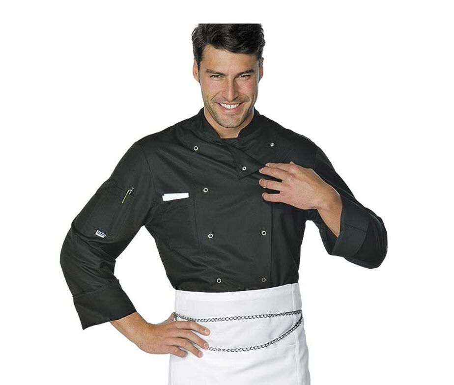 • Chaqueta de cocina de manga larga. Chaqueta de cocina de gran calidad y confort de la prestigiosa marca italiana Isacco.