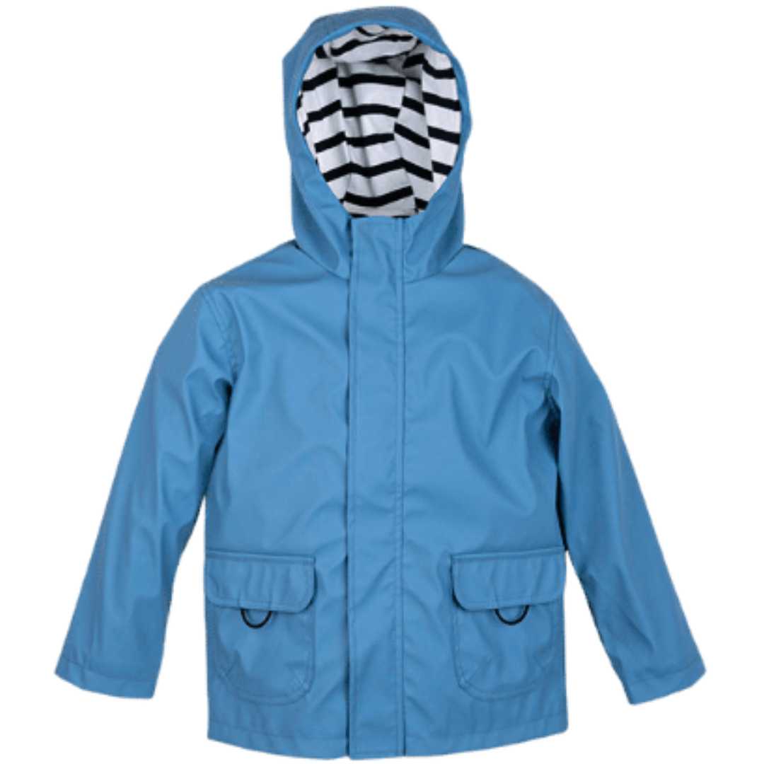 Un chubasquero clásico estilo marinero, con detalle de rayas en el interior, bonita capucha y bolsillos laterales con las que los peques irán protegidos del agua, el frio y el viento durante la temporada otoño invierno.