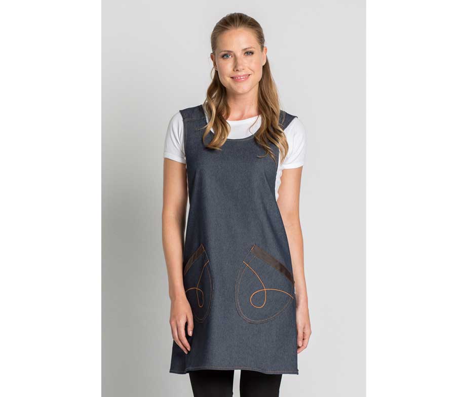 Casulla vaquera con dos bolsillos inferiores. Muy cómoda, no lleva cintas y se coloca cruzada por la espalda. Estola tejana de mujer ideal para centros de estética, balnearios, spas y peluquerías de la prestigiosa marca española de gran calidad Dyneke.