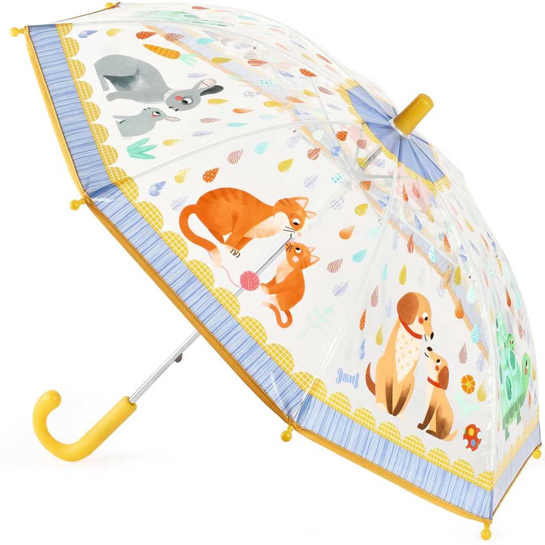 El paraguas transparente Jungle de Little L, nos ayudará caminar bien protegidos de la lluvia. Realizado con pequeñas ilustraciones para alegrar los días lluviosos.